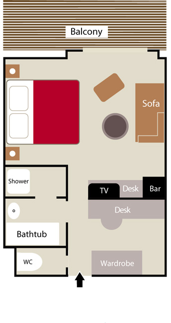 Capacity :up to 2 passengers per cabin Private balcony Individually-controlled air-conditioningKing-size bed or twin bedsShowerMinibarFlat screenSatellite TVDesk with stationeryIpod™ playersVideo on demandSafeHairdryerBath robesSatellite direct line telephone110/220 volts outletFrench bath products24hr room serviceInternet access wifi.