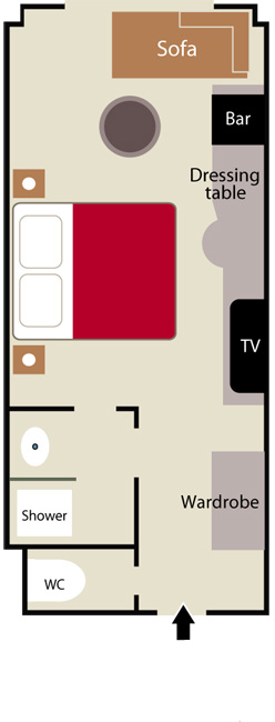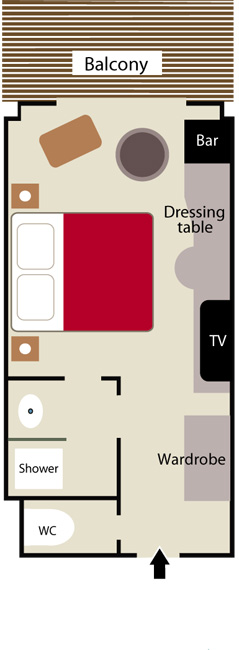 Capacity :up to 2 passengers per cabinPrivate balcony. Individually-controlled air-conditioningKing-size bed or twin bedsShowerMinibarFlat screenSatellite TVDesk with stationeryIpod™ playersVideo on demandSafeHairdryerBath robesSatellite direct line telephone110/220 volts outletFrench bath products24hr room serviceInternet access wifiButler service